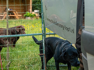 Vervoer van uw viervoeter vindt plaats in veilige hokken, elke hond in een eigen hok. De bestelauto is voorzien van ventilator en aan boord bevindt zich een EHBO kit en brandblusser.