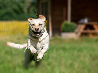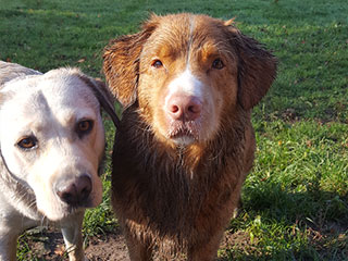 Het uitlaatveld van Thuisdierzorg één op één is helemaal omheind en beschikt over een zwemvijver, waar de honden naar hartelust kunnen rennen en spelen en een duik kunnen nemen in de zwemvijver voor verkoeling.